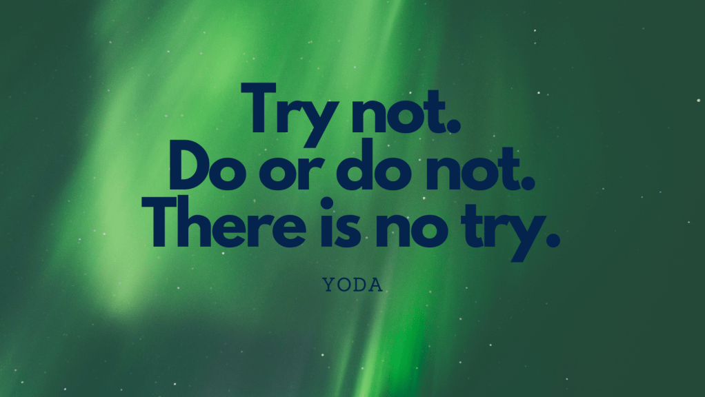 In my personal observations of my own “trying” habits, I’ve come to see that “trying” is somewhat of a protective strategy for my mind. If I try and perceive failure, “At least I tried”. I might convince myself, “I did my best” or notice judgements arise, or make various excuses, yada yada yada.