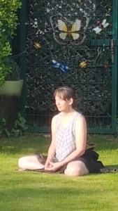 This is me captured enjoying some eyes closed practice in my Mums garden. I love to Meditate outside in Nature!